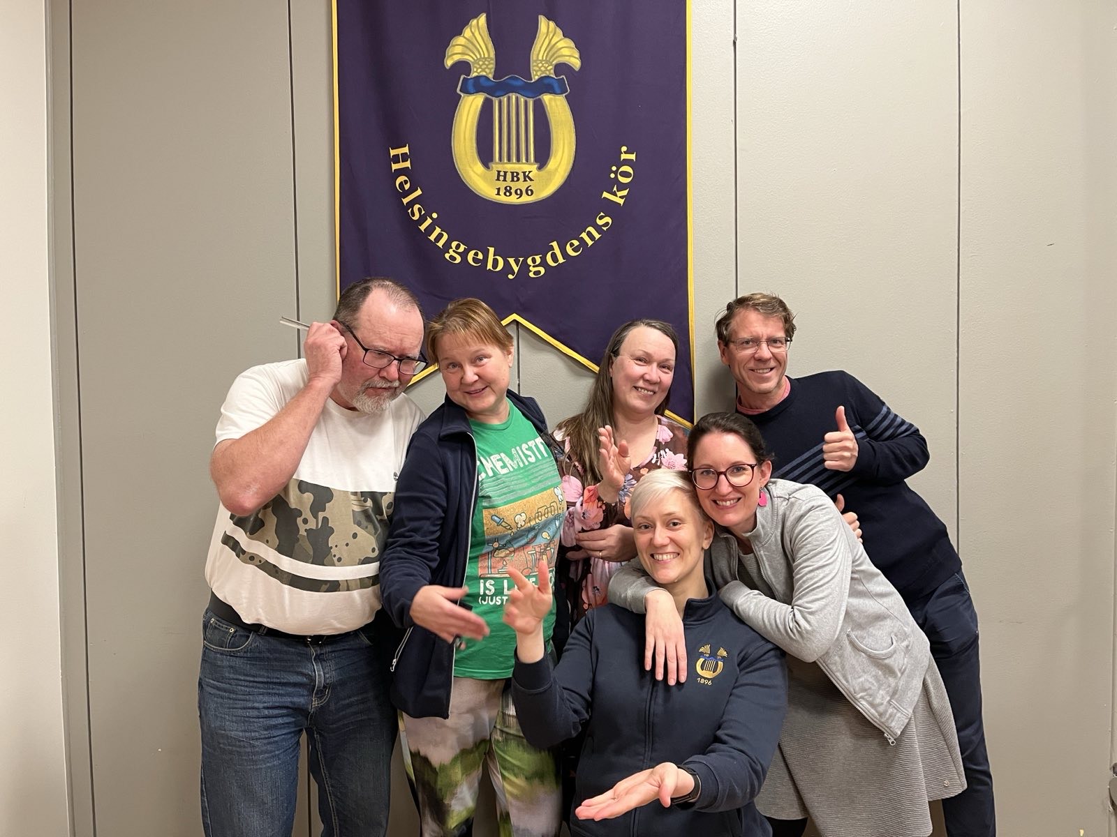 Sångardirigenter från vänster: Markku Lehikoinen, Marjut Kamppinen, Anu Haapalehto, Jerker Illman, framme: Mia Finström-Haanpää, Linn Meander